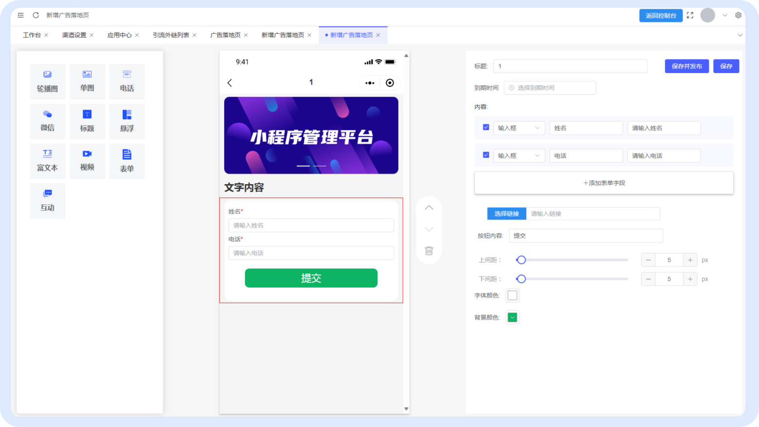 广告落地页创建次数:无限制
